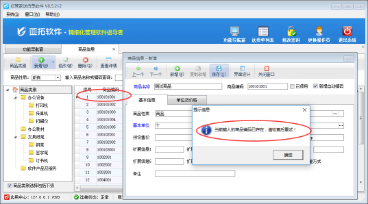 亞拓軟件自主研發(fā)的亞拓管理軟件、紅管家送貨單軟件、紅管家倉庫管理軟件等都支持新增商品信息,為了避免增加的商品信息出現(xiàn)重復(fù),軟件支持參數(shù)設(shè)置商品編碼不可重復(fù)。 以紅管家送貨單軟件為例,在系統(tǒng)管理—》系統(tǒng)參數(shù)配置—》業(yè)務(wù)參數(shù)內(nèi)將“數(shù)據(jù)可否重復(fù)參數(shù)”中的“商品編碼可重復(fù)”參數(shù)的勾選取消,然后保存設(shè)置。如下圖所示: &nb
