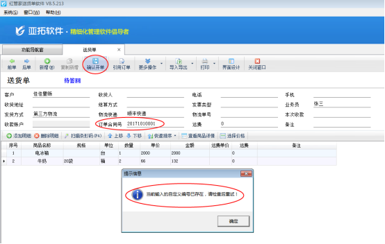 亞拓管理軟件、紅管家送貨單軟件、紅管家倉庫管理軟件,支持開單直接錄入新客戶和提前維護(hù)客戶信息開單直接選擇兩種方式(軟件默認(rèn)是允許開單直接輸入)。 部分客戶存在多個(gè)操作員登錄軟件,為了避免操作員直接錄入客戶名稱開單出現(xiàn)錯(cuò)誤,可以設(shè)置開單只允許通過選擇客戶信息中的客戶進(jìn)行開單,不允許直接錄入。以亞拓管理軟
