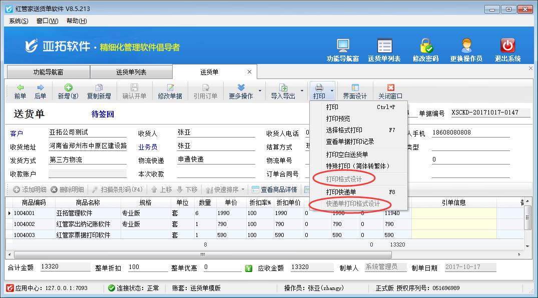 紅管家送貨單打印軟件是一款針對中小型企業(yè)開發(fā)的集送貨管理(發(fā)貨管理)、退貨管理(銷售退貨)、銷售收款(應(yīng)收款管理)等功能為一體的送貨管理及打印軟件(送貨單打印軟件、發(fā)貨單打印軟件、出貨單打印軟件、收據(jù)打印軟件、貨單票據(jù)打印軟件)。 紅管家送貨單軟件內(nèi)支持設(shè)置操作員不可調(diào)整打印格式模版,本篇文章我們來詳細(xì)介紹一下紅管家送貨單軟