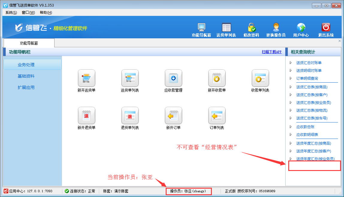 信管飛RMS、信管飛倉庫管理軟件、信管飛送貨單軟件、信管飛出納記賬軟件中都支持單據(jù)界面設(shè)計,用戶可根據(jù)自身業(yè)務(wù)要求對軟件界面進行設(shè)置,包括配置數(shù)據(jù)項名稱、啟用擴展數(shù)據(jù)項、顯示先后順序、設(shè)置顯示寬度、對齊方式、是否必填、取值方式及取值設(shè)置等。 軟件內(nèi)都可以設(shè)置多個操作員并對操作員賬號設(shè)置權(quán)限,部分用戶不希望員工賬號可以隨便修改