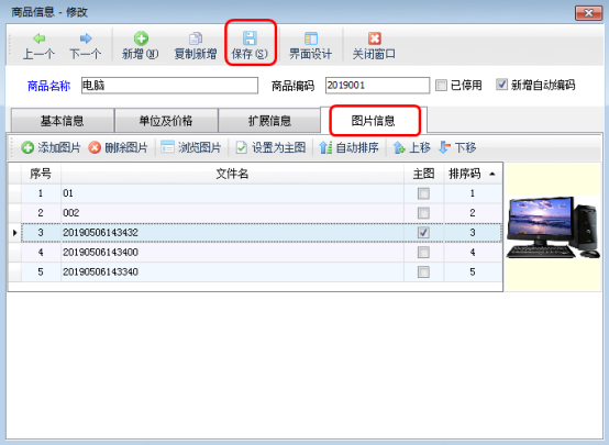 信管飛倉庫管理軟件、信管飛RMS(進(jìn)銷存軟件)都可以對(duì)商品信息進(jìn)行管理,都支持上傳商品圖片,以便用戶查看商品圖片信息。本篇文章以信管飛倉庫管理軟件為例介紹一下如何上傳商品圖片。 在功能導(dǎo)航窗點(diǎn)“基礎(chǔ)資料”—》“商品信息”即可進(jìn)入“商品信息”界面,對(duì)商品進(jìn)行新增或修改時(shí)可以編輯商品信息、上傳商品圖片信息。以商品“電腦”為例,對(duì)