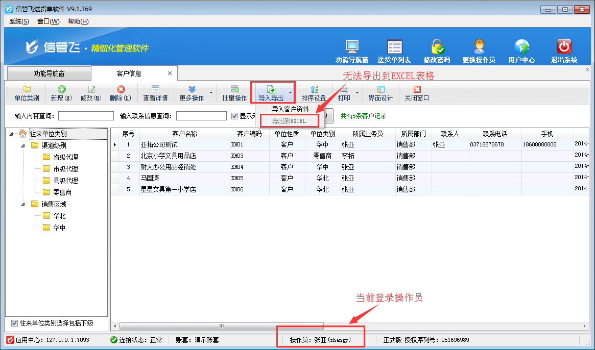 信管飛送貨單軟件、信管飛RMS、信管飛倉庫管理軟件等都支持管理基礎(chǔ)資料信息和允許設(shè)置多個(gè)操作員進(jìn)行登錄軟件。軟件支持將基礎(chǔ)資料信息以EXCEL的形式導(dǎo)出放到自定義的文件夾內(nèi)以供備份或保存,如果需要設(shè)置操作員不允許導(dǎo)出客戶信息,如何設(shè)置?本文以信管飛送貨單軟件為例,示范下如何設(shè)置操作員不可導(dǎo)出客戶信息。 在功能導(dǎo)航窗點(diǎn)擊“系統(tǒng)