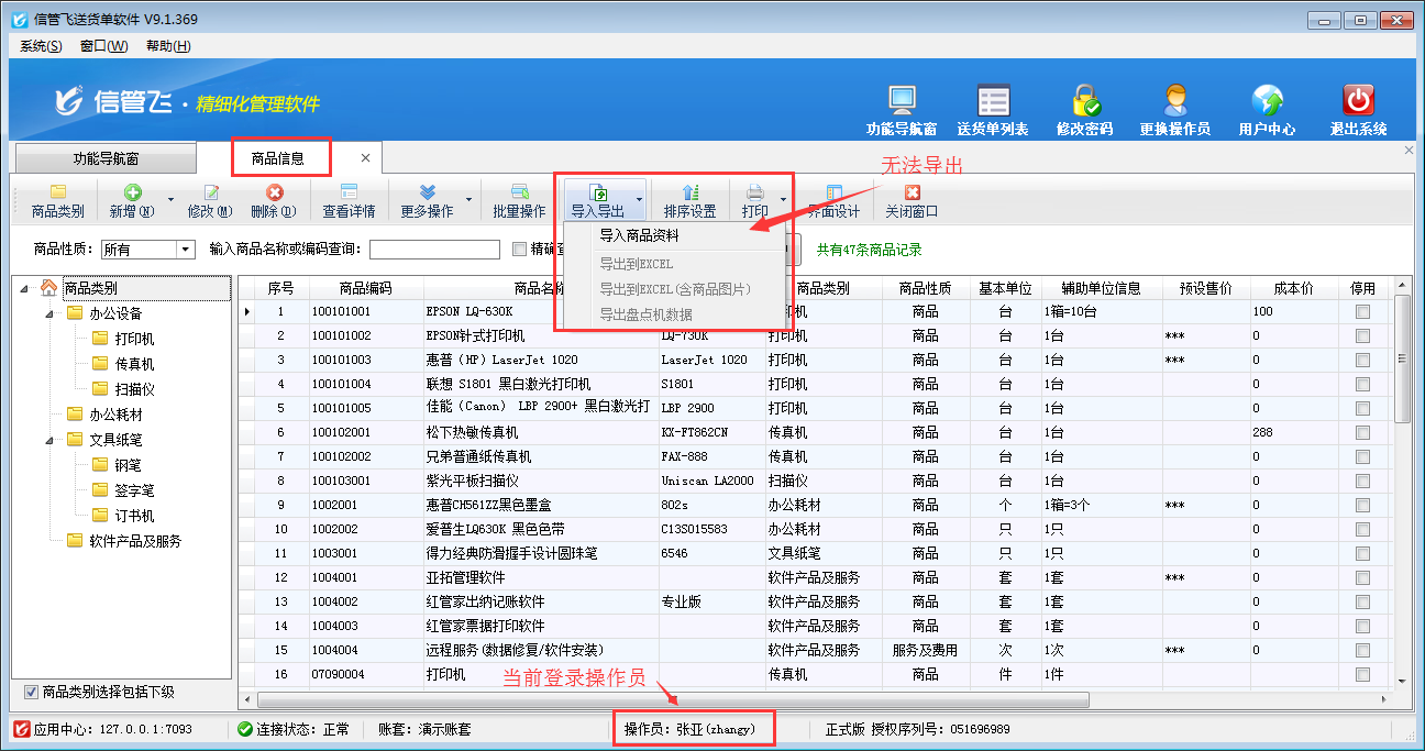 信管飛送貨單軟件、信管飛RMS、信管飛倉庫管理軟件等都支持管理基礎(chǔ)資料信息和允許設(shè)置多個(gè)操作員進(jìn)行登錄軟件。軟件支持將基礎(chǔ)資料信息以EXCEL的形式導(dǎo)出放到自定義的文件夾內(nèi)以供備份或保存,如果需要設(shè)置操作員不允許導(dǎo)出商品信息,如何設(shè)置?本文以信管飛送貨單軟件為例,示范下如何設(shè)置操作員不可導(dǎo)出商品信息。 在功能導(dǎo)航窗點(diǎn)擊“系統(tǒng)