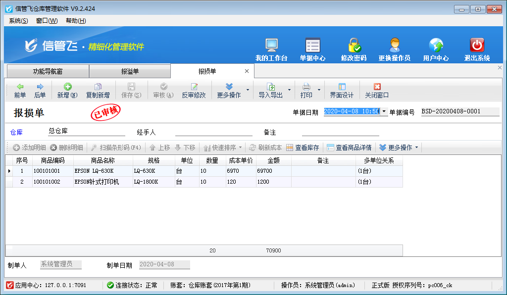• 倉庫管理軟件中報溢單、報損單的使用方法