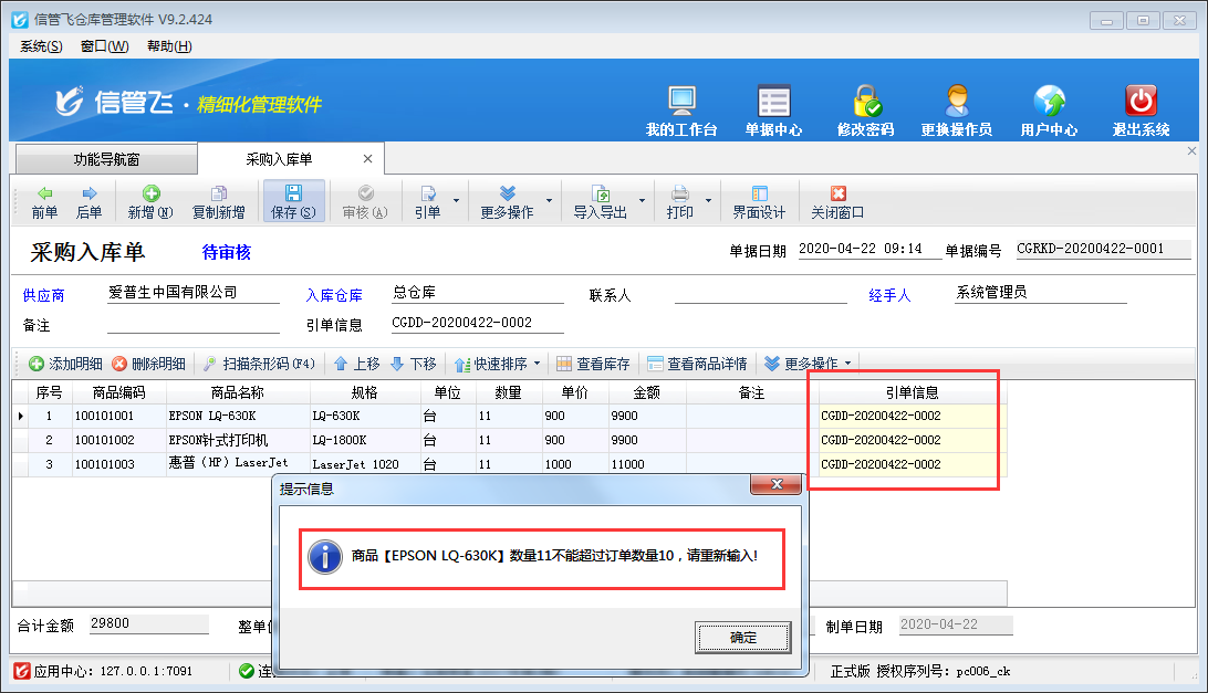 信管飛倉庫管理軟件V9.4.569發布