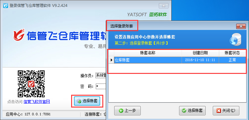 信管飛RMS、信管飛倉庫管理軟件、信管飛送貨單軟件、信管飛出納記賬軟件、信管飛票據打印軟件等軟件都含有賬套管理功能,在應用中心內支持建立多個賬套,已使用的帳套如果不再繼續使用,可以停用帳套,停用帳套后,客戶端程序登錄時將無法再連接該帳套。本文我們以信管飛倉庫管理軟件為例演示一下如何停用帳套。    應用中心(紅色圖標)程序運行后會