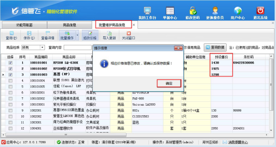 信管飛RMS軟件、信管飛送貨單軟件等都支持開單前錄入好商品的預設價格,如預設售價等,方便開單選擇商品時自動獲取價格信息。部分客戶可能后期存在商品價格上調或者下降的調整,以“信管飛RMS軟件”為例,示范下如何批量修改商品預設售價。 首先需要進人商品信息批量維護界面,在功能導航窗點擊“基礎資料”—》“商品