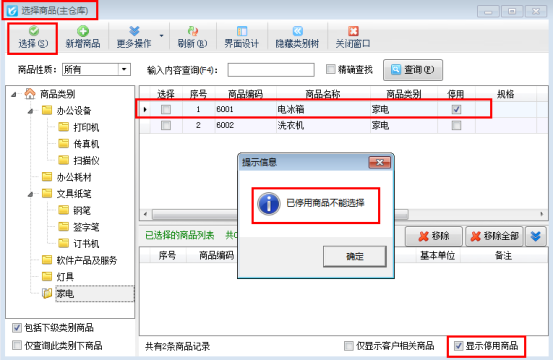 信管飛RMS(進銷存一體化軟件)、信管飛倉庫管理軟件、信管飛送貨單軟件都可以對商品信息進行管理,如果有些商品開過了單據,您以后不再使用該商品進行開單了,可以把該商品設置為停用狀態。已停用的商品無法被用于開單,選擇商品窗口可以隱藏已停用的商品。如何把不用的商品設置為停用呢?本篇文章以信管飛RMS專業版為例詳細介紹一下如何把商品設置為停用狀態。 &nb