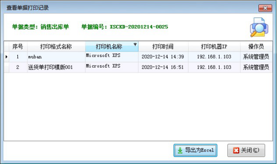 信管飛送貨單軟件、信管飛RMS軟件等支持自定義打印模板,可選擇不同模板打印單據,可根據參數設置控制打印次數,跟蹤記錄單據每次打印情況,本文示范下如何查看單據打印記錄? 在送貨單界面工具欄點擊“打印”—》“查看單據打印記錄”可以打開查看單據打印記錄界面,如下圖所示,可以查看本單打印記錄,跟蹤記錄單據每次打