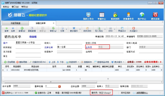 信管飛RMS軟件支持客戶和供應商設置所屬業務員,來管理業務員的業績情況。在開單選擇客戶后自動顯示默認的業務員和經手人,為了避免操作員開單選擇客戶或供應商后修改對應的業務員或經手人信息,軟件支持控制操作員不能修改業務員和經手人權限,本文以“信管飛RMS軟件”為例進行示范。 使用操作員“張亞”登錄軟件,在
